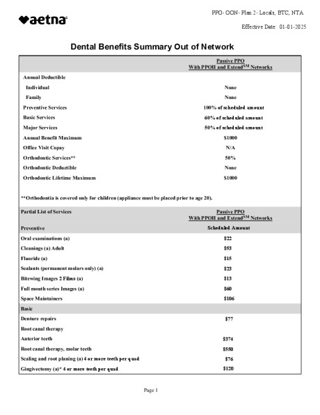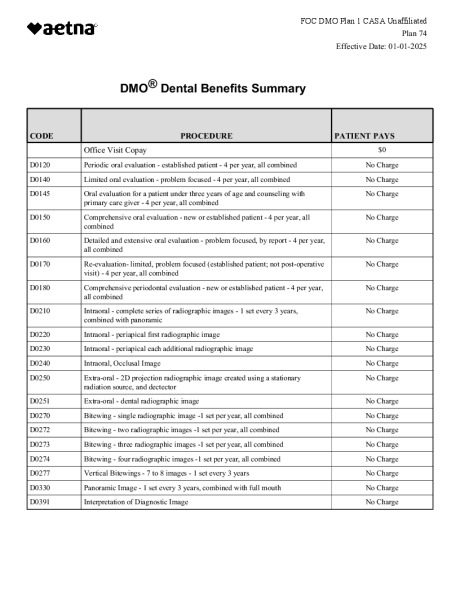 - Majority of employees are under the Aetna Freedom of Choice Dental plan.