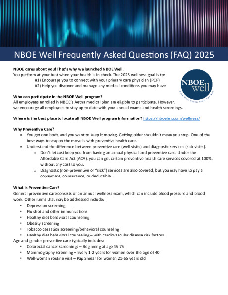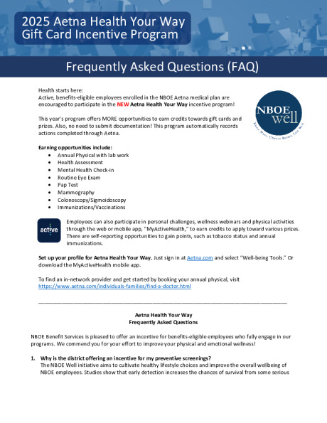 NBOE Well is a robust wellness program offered to employees who participate in the district’s medical plans, at no additional cost. NBOE launched this program to support employee health and well-being, so you can be at your best. For more information, please see 2025 NBOE Well General Wellness FAQ.