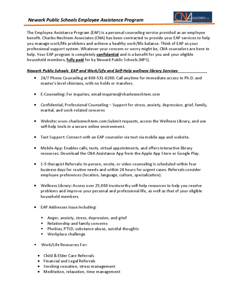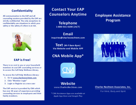 For more information click http://www.charlesnechtem.com/. Click on this link to download the CNA EAP Brochure. Use company name Newark Board when registering and logging in.